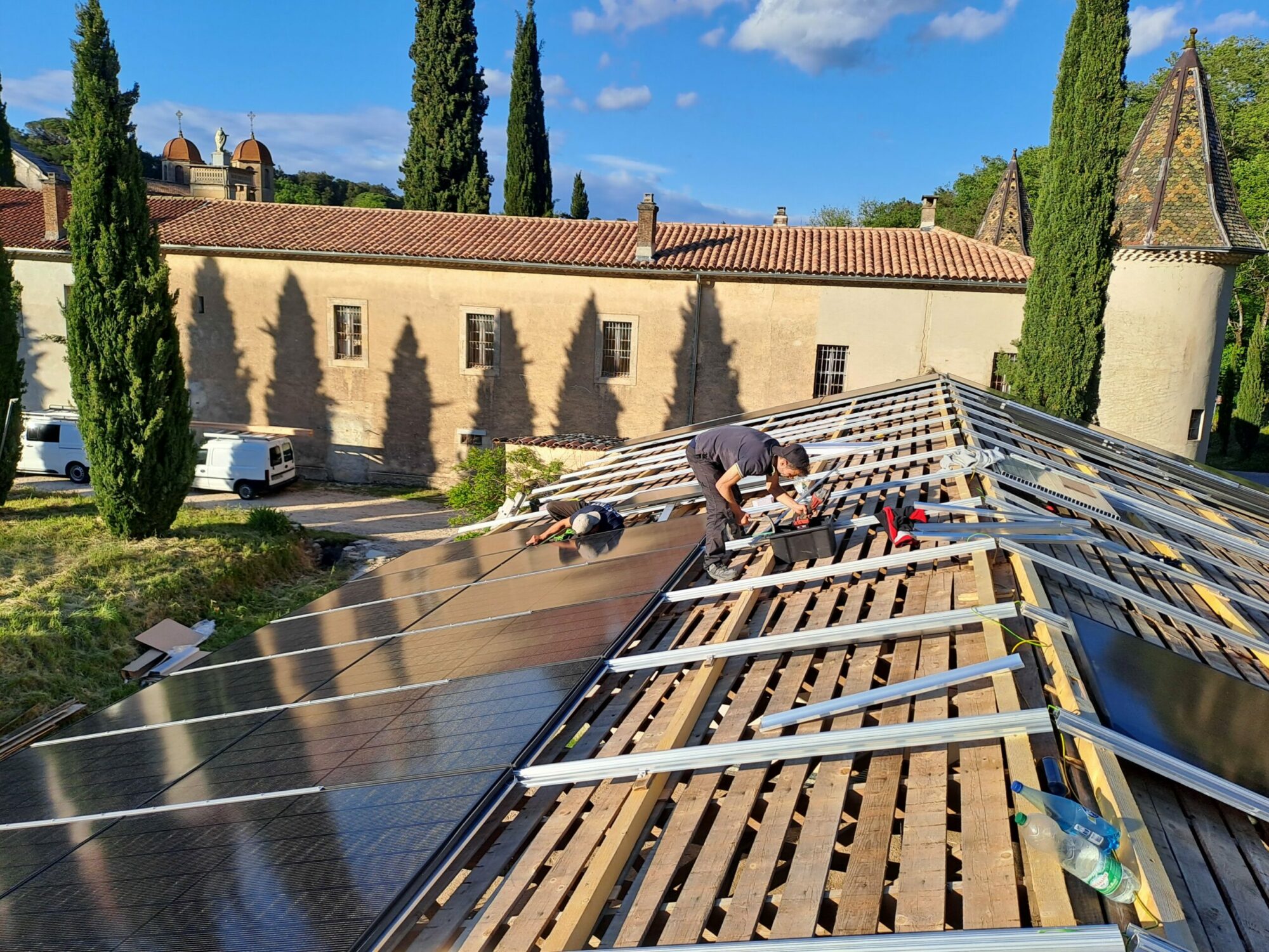 En mai 2025, nous avons installé 100 panneaux photovoltaïques sur un hangar agricole de la Chartreuse de Montrieux dans le Var.